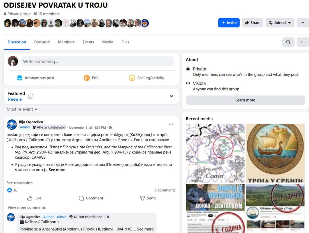 Одисејев повратак у Троју је заједница истраживача, знатижељника и љубитеља старине која постоји од 2014. године и данас окупља више од 10.000 чланова. У групи се већ дуго размењују мишљења, подаци и теренска искуства, постављају мапе, фотографије, цитати из извора и критичка читања — све што помаже да велике приче античког света сагледамо из новог угла.